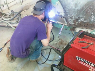 Welding in a new lower rocker panel